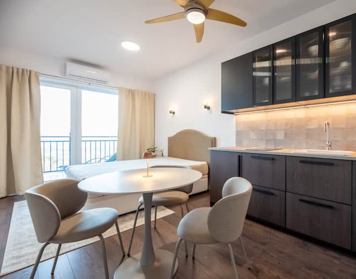 किचन आणि शॉवरसह स्टुडिओ