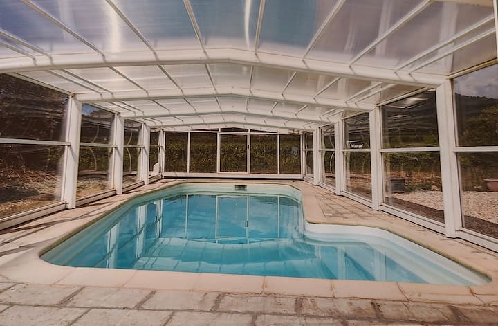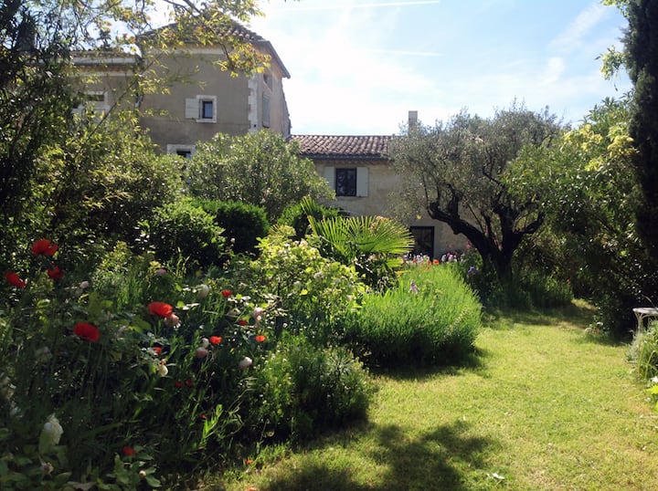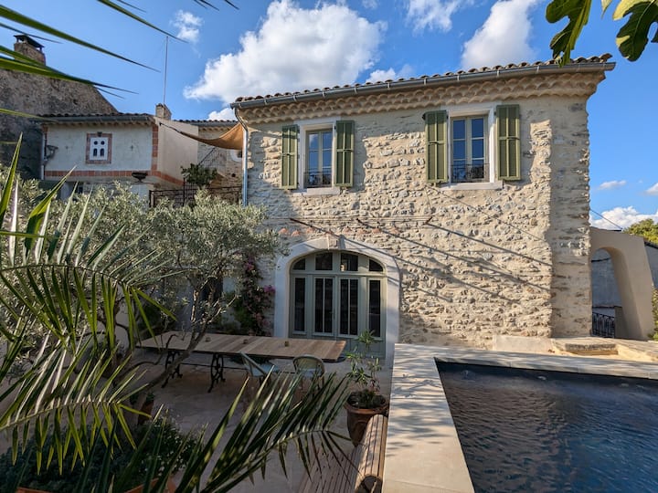 माँट व्हेंटूक्सच्या पायथ्याशी स्विमिंग पूल असलेले मोहक कॉटेज