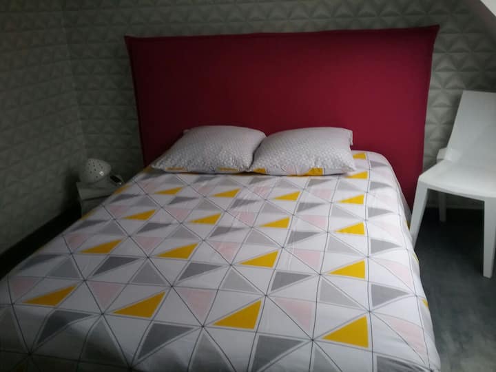 दक्षिणेकडे तोंड करून 55m2 चे निवासस्थान. पूर्णपणे शांत.