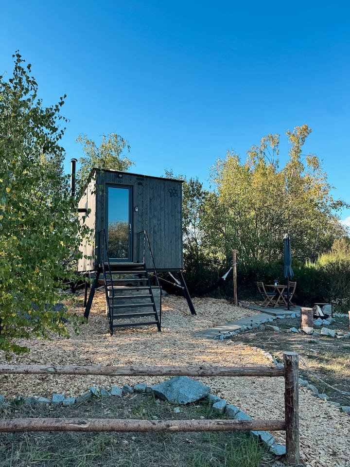 दगडी तलाव आणि सॉनासह ग्लॅम्पिंग केबिन