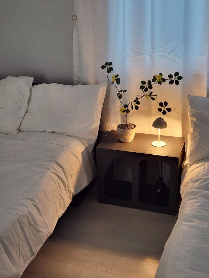 [오픈특가]#광안역5분#호텔침구#NETFLIX#포토존#이동식TV#퀸침대2개