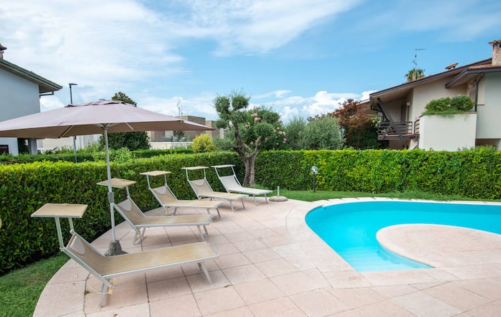 गार्डन आणि पूलसह आरामदायक लॉफ्ट
