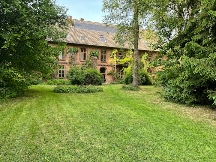 आमच्या सन हॉर्स फार्मवर दक्षिणेकडे टेरेस असलेले कुटुंबासाठी अनुकूल अपार्टमेंट