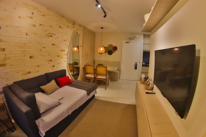 एअर कंडिशनिंग, हायड्रो आणि बीचचा ॲक्सेस असलेले एरियामधील अपार्टमेंट