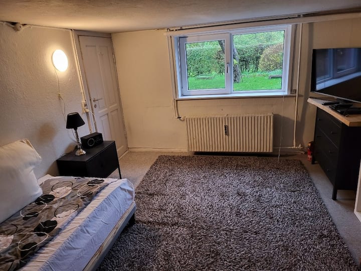खाजगी टॉयलेट/बाथरूम आणि लहान लिव्हिंग रूमसह बेडरूम