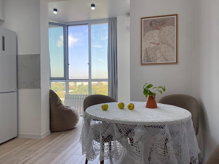 सेंट्रल अल्माटीमधील मोहक 1BR मेझानिन अपार्टमेंट