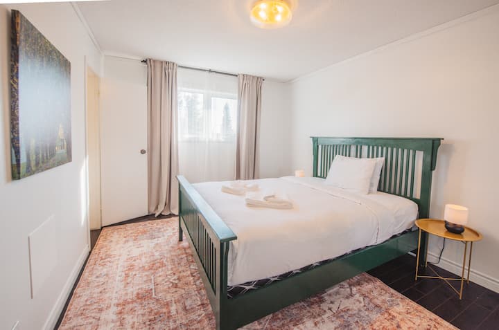 डाऊनटाऊनमधील मास्टर बेडरूम | टोबोगन हिल रिट्रीट