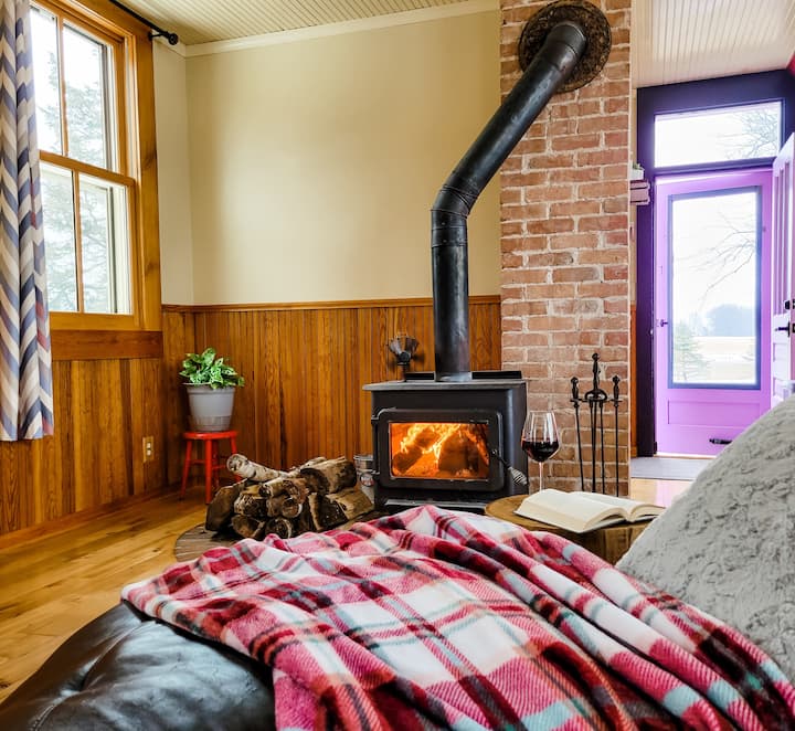 कुंपण घातलेले यार्ड असलेले पाळीव प्राण्यांसाठी अनुकूल अँटिक स्कूलहाऊस