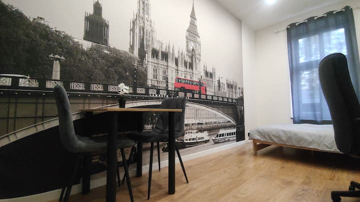 सिटी सेंटरमध्ये बाल्कनी असलेली मोठी रूम.