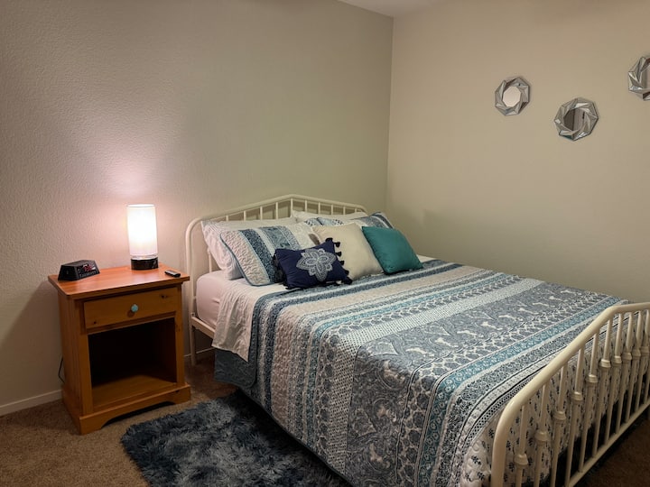एक्झिक्युटिव्ह स्टाईल होममधील मोहक लार्ज ब्लू बेडरूम