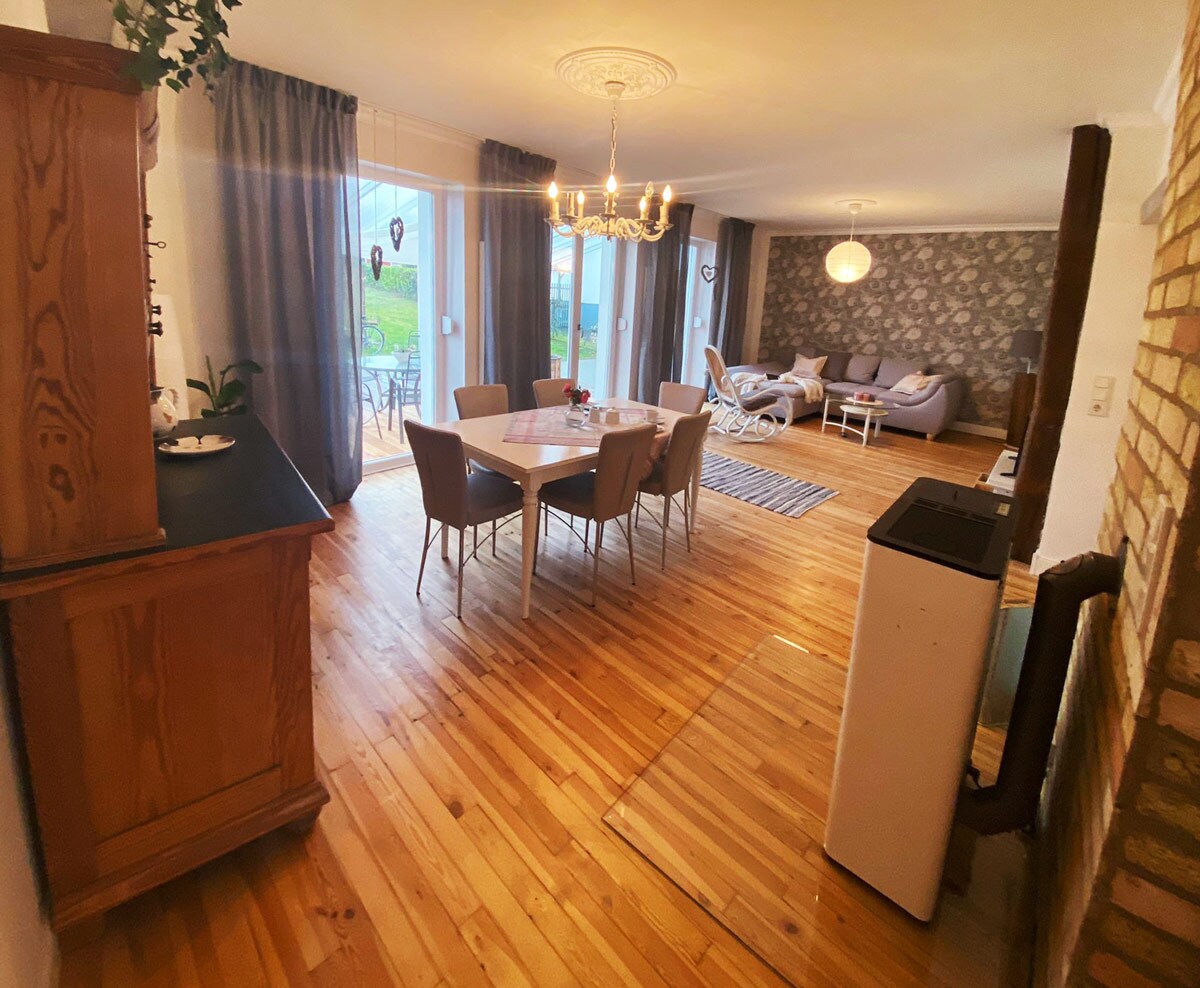 Das liebevoll eingerichtete Haus verf├╝gt auf 160qm ├╝ber mehrere Schlafzimmer, die Platz f├╝r eine Familie oder eine Gruppe von Freunden bietet. Die K├╝che ist umfangreich ausgestattet. Das gro├Яe Wohnzimmer mit angrenzendem Esszimmer, bietet gen├╝gend Platz, um gemeinsam zu speisen und sich sp├дter in geselliger Runde hier oder auf der Terrasse, austauschen zu k├╢nnen. Hier stehen neben einer Spielecke auch ein Kinderhochstuhl f├╝r unsere kleinen G├дste bereit.