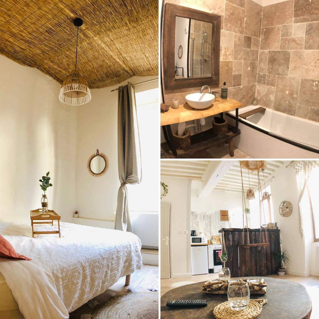 Le Mac ZEN se situe au premier étage d'un immeuble de caractère en pierres en centre ville (hypercentre) de Mâcon. L'appartement rénové fin 2020 est en très bon état. Vous disposerez d'une chambre à coucher avec un lit double (140*200 cm) avec literie grand confort, dans laquelle se trouve un espace de travail avec connexion Wifi gratuite. Une vaste pièce de vie dispose d'une cuisine équipée, d'un coin repas, canapé convertible et smart TV. Salle de bain avec douche 4 jets