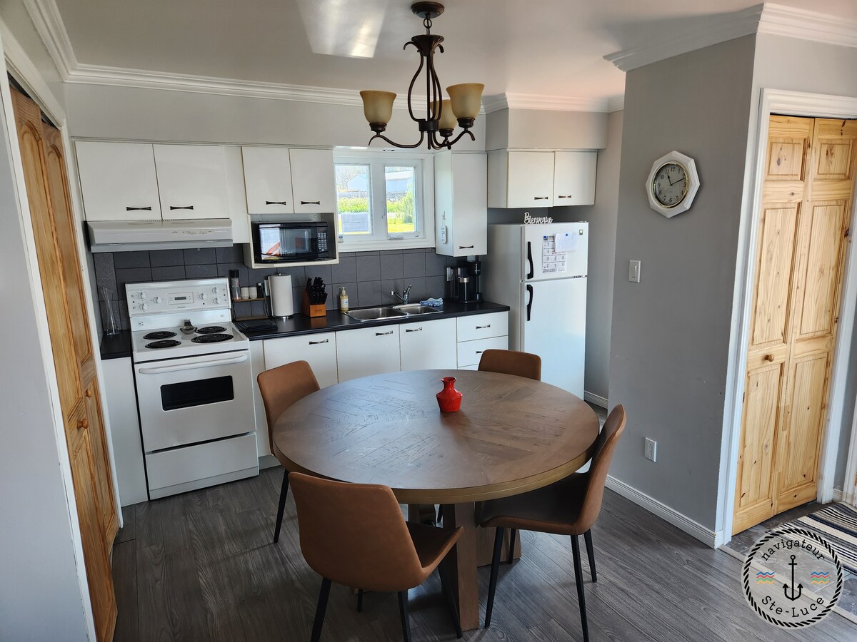सेंट लॉरेन्स नदीचे 180° पॅनोरॅमिक दृश्य. खाजगी रूफटॉप टेरेस, स्वतंत्र बेडरूम, सुसज्ज किचन, वेगवान वाय-फाय आणि विनामूल्य पार्किंग. बीच आणि सेंट-ल्यूस प्रॉमेनेडपर्यंत थोडेसे चालून जाण्याचे अंतर, L'APPÂT Buvette रेस्टॉरंटच्या शेजारी: नदीच्या दृश्यासह सीफूड, स्थानिक मांस आणि कॉकटेल्स. रिमूस्कीपासून 10 मिनिटे.