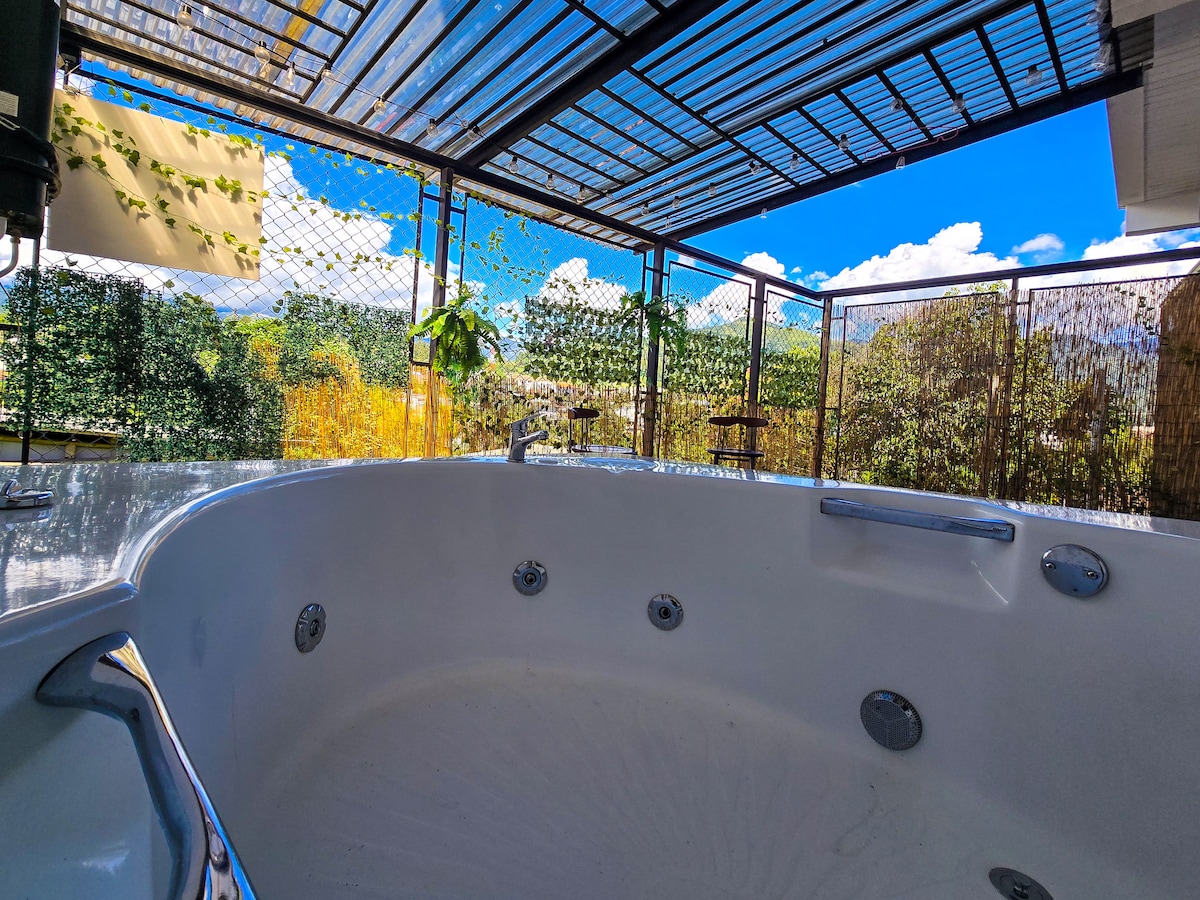 बांबूच्या जंगलात विलीन झालेल्या आमच्या ग्लॅम्पिंग लक्झरीमध्ये एक जादुई रात्र जगा. आम्ही सालेंटोच्या ग्रामीण भागात आहोत, ज्याच्या सभोवताल नद्या आणि पर्वत आहेत. आमचे घर समकालीन शैलीला अडाणी आणि नैसर्गिक गोष्टींसह एकत्र करते. येथे तुम्ही आराम करण्यासाठी एक खाजगी हॉट टब, एक कॅटामारन जाळी (हॅमॉक नेट), एक उबदार बायोएथेनॉल आग, एक ओपन - एअर शॉवर, माउंटन बाइक्स आणि इतर अनेक सुविधांचा आनंद घ्याल जे तुमचे वास्तव्य खरोखर अविस्मरणीय अनुभव बनवतील.