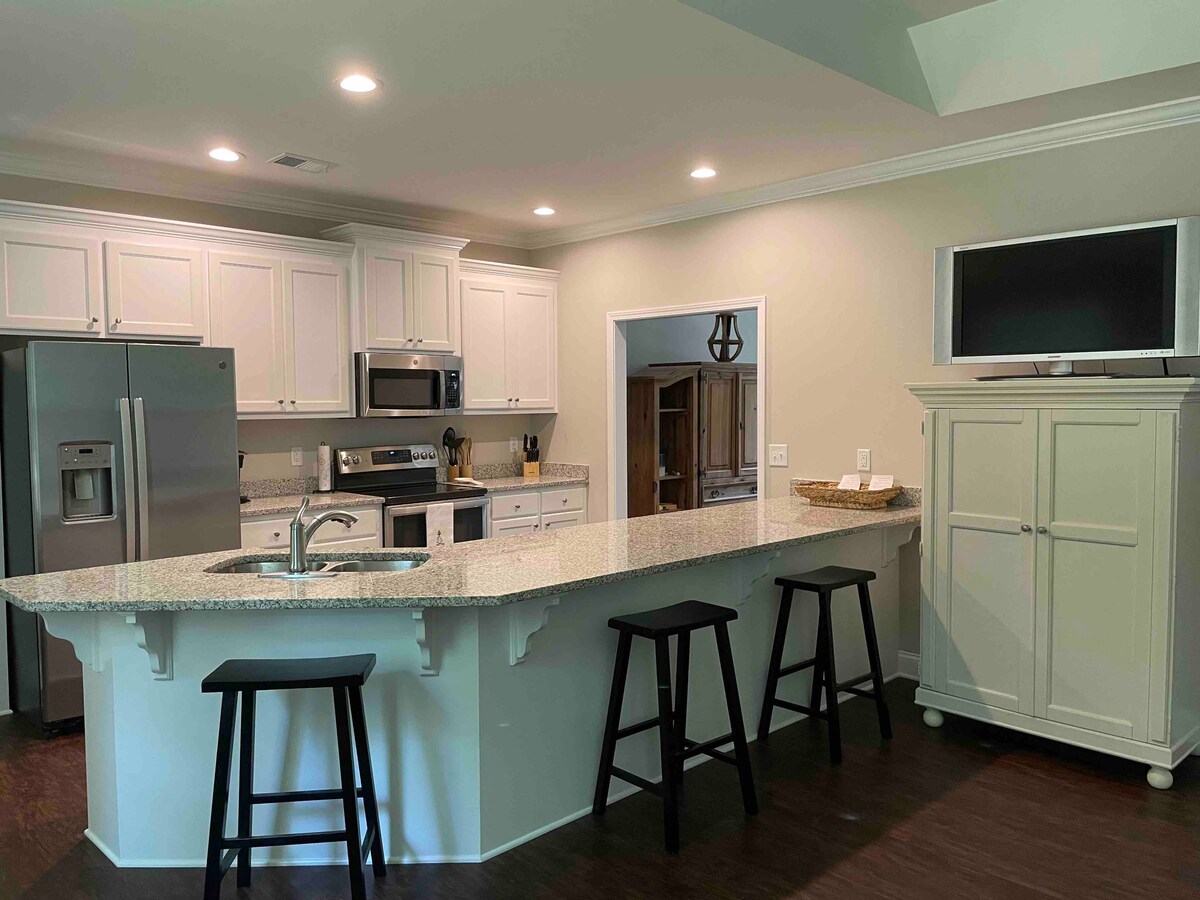 परत या आणि या नवीन शांत, स्टाईलिश जागेत आराम करा. तुमच्या स्वतःच्या खाजगी डॉक आणि बोट रॅम्पद्वारे लेक मरेचा आनंद घ्या. हे उत्तम छोटेसे घर मार्टिनच्या लँडिंग बार आणि ग्रिल, नाचो मार्गारिटास आणि बिग मॅन मरीनाजवळील एका शांत ठिकाणी आहे. दिवसा लेक मरेने ऑफर केलेल्या सर्व गोष्टींचा आनंद घ्या आणि या शांत ठिकाणी परत जा आणि फायर पिटभोवती आराम करा. या कॉटेजमध्ये दररोज सकाळी आनंद घेण्यासाठी पूर्ण किचन आणि उदारपणे सुसज्ज कॉफी बार आहे. किंग बेड आणि क्वीन साईझ सोफा स्लीपर.