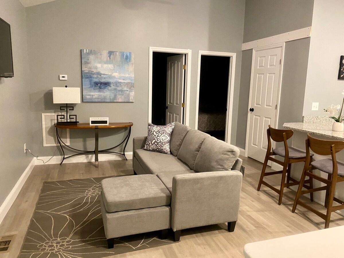 तुम्हाला हा स्टाईलिश काँडो आवडेल. आम्ही खूप अभिमान बाळगतो आणि आमच्या प्रॉपर्टीची खूप काळजी घेतो. हे नवीन फ्लोअरिंग आणि उपकरणांसह अपडेट केले गेले आहे आणि ते स्वच्छ, उबदार आणि मोहक आहे. जवळपासच्या दंड, प्रासंगिक किंवा झटपट जेवणाचा आणि सर्व प्रकारच्या शॉपिंगचा आनंद घ्या. तुम्हाला आराम करण्यासाठी, स्वयंपाक करण्यासाठी आणि मोठ्या स्क्रीनवरील टीव्ही आणि हाय स्पीड इंटरनेट सेवेचा (घरासारखेच) आनंद घेण्यासाठी स्टॉक अप करायचे आहे आणि घरीच राहायचे आहे. एक रात्र, वीकेंड किंवा काही महिने वास्तव्य करा. अंगणातील कुंपण तुमच्या चार पायांच्या कुटुंबातील सदस्यांसाठी योग्य आहे.