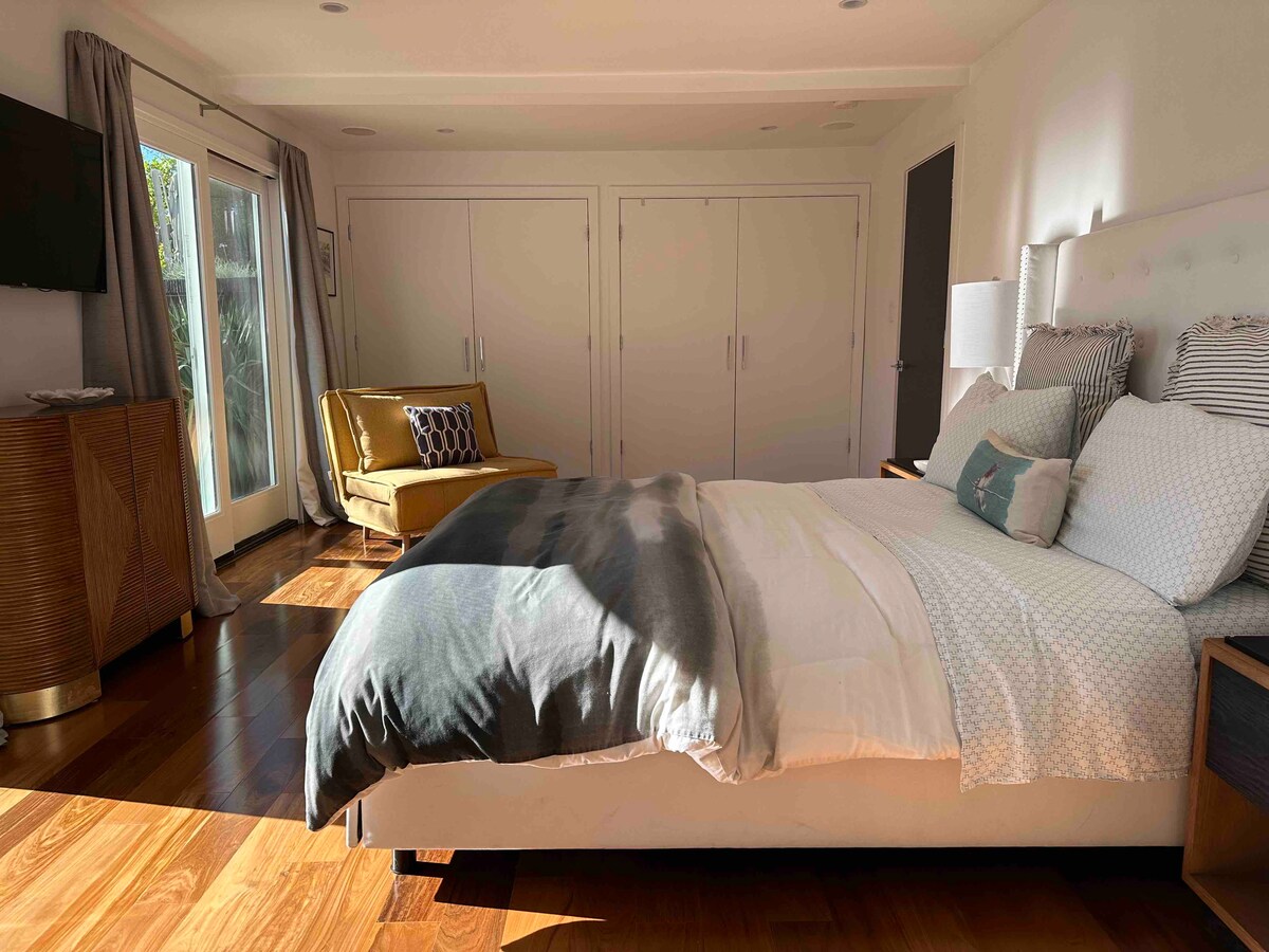 सिलिकॉन व्हॅलीच्या मध्यभागी असलेल्या आमच्या प्रशस्त, 500 चौरस फूट स्टुडिओ कॉटेजमध्ये अभिजातता आणि आरामाचा अनुभव घ्या. क्लासिक क्राफ्ट्समन शैलीमध्ये नुकतेच बांधलेले, त्यात लाकडी केसमेंट खिडक्या, ॲडिरॉंडॅक खुर्च्या असलेले खाजगी गार्डन आणि इटालियन रेंजसह पूर्णपणे सुसज्ज किचन आहे. इन - सीलिंग स्पीकर्स आणि लाईटनिंग - फास्ट वायफाय असलेल्या 65" टीव्हीवर सिनेमा - सारख्या अनुभवांसाठी एक उबदार सेक्शनल क्वीन - साईझ बेडचा आनंद घ्या. आलिशान आणि संस्मरणीय वास्तव्यासाठी योग्य.