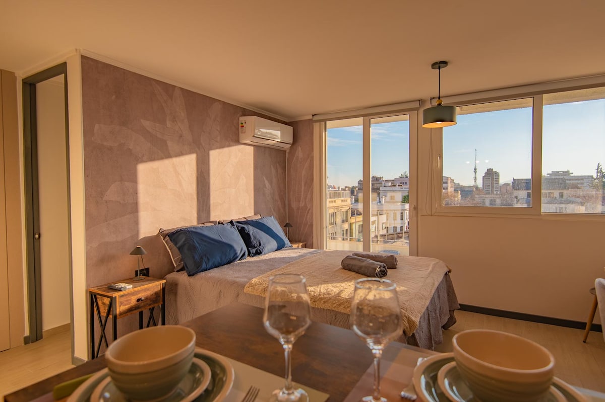 शहराच्या मध्यभागी असलेले स्टायलिश आणि आरामदायक अपार्टमेंट. मध्यवर्ती ठिकाणी असलेल्या या घरात स्टाईलिश अनुभवाचा आनंद घ्या. मेट्रो पार्क अल्माग्रो आणि सँटियागो सिव्हिक क्वार्टरच्या मुख्य आकर्षणांपासून काही पायऱ्या, तुम्हाला तुमच्या वास्तव्याचा आनंद घेण्यासाठी एक समृद्ध जागा मिळेल, जी तुम्हाला आवश्यक असलेल्या सर्व गोष्टींनी सुसज्ज असेल, जेणेकरून तुमची एकमेव चिंता तुमची ट्रिप असेल.
