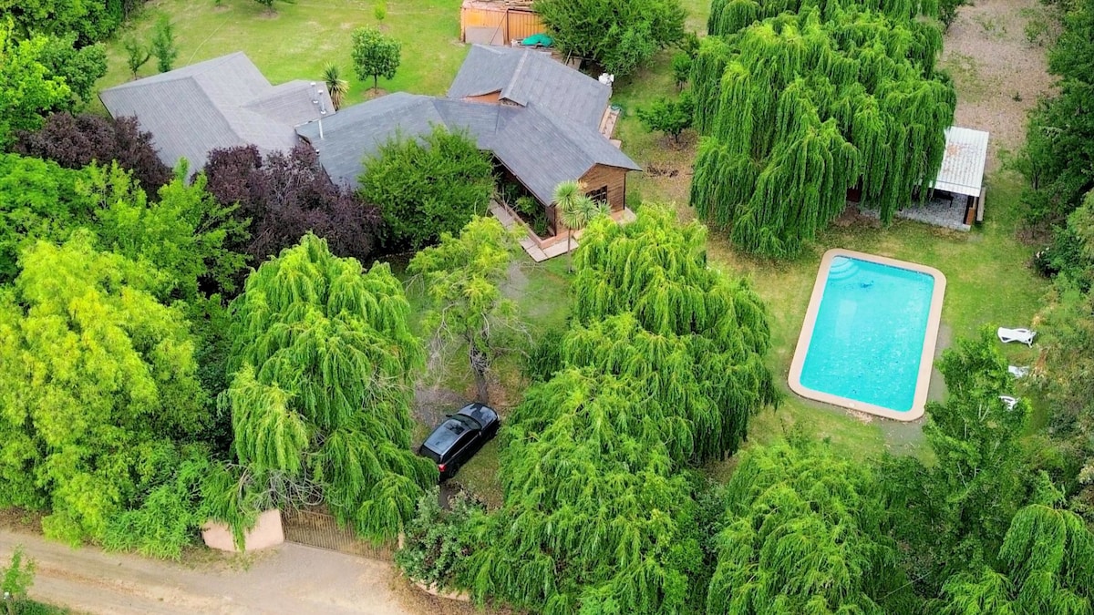 5000 चौरस मीटरच्या प्लॉटवर 250 मीटरचे अप्रतिम घर, शहरापासून दूर जाण्यासाठी आणि कुटुंबासह जास्तीत जास्त विश्रांती घेण्यासाठी आदर्श आहे. पर्यटन स्थळे: स्की सेंटर, सॅन फ्रॅन्सिस्को लॉज, सेन्डेरो डी चिली, वाईन टूर, लॉस अँडिस माऊंटन रेंज, सामान्य फूड रेस्टॉरंट्स, थर्मल बाथ्स आणि लिबर्टाडोरेस सीमा क्रॉसिंग.