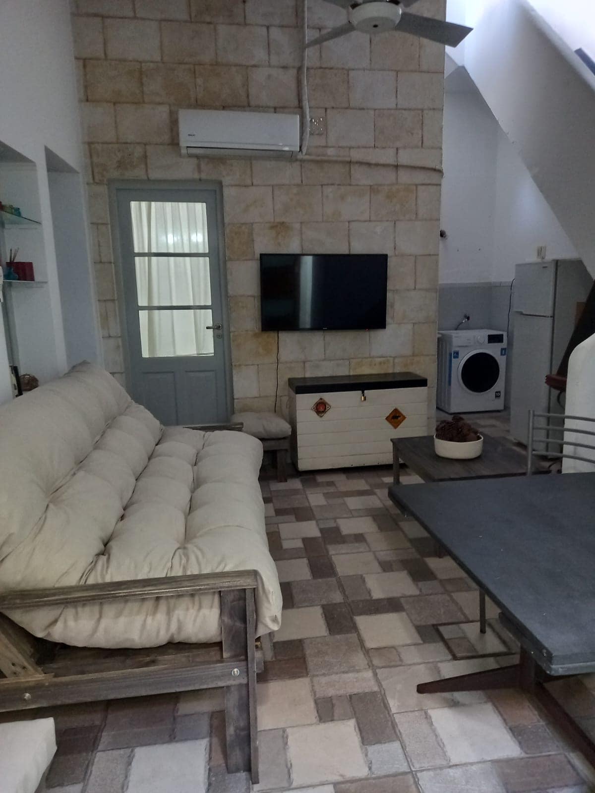 Located in the historical Pasaje Santamarina, close to the heart of San Telmo, and reached through one flight of stairs, it has a living area with a fireplace and an integrated kitchen, 2 bedrooms (one in an open mezzanine, with a desk), an entertainment center with an LCD TV (with Chromecast, no cable), a bathroom (with shower box, no tub), and a walk-in closet. Features Wi-fi connection and a central air conditioning system. Very quiet and light-filled. Easy access to Buenos Aires attractions.