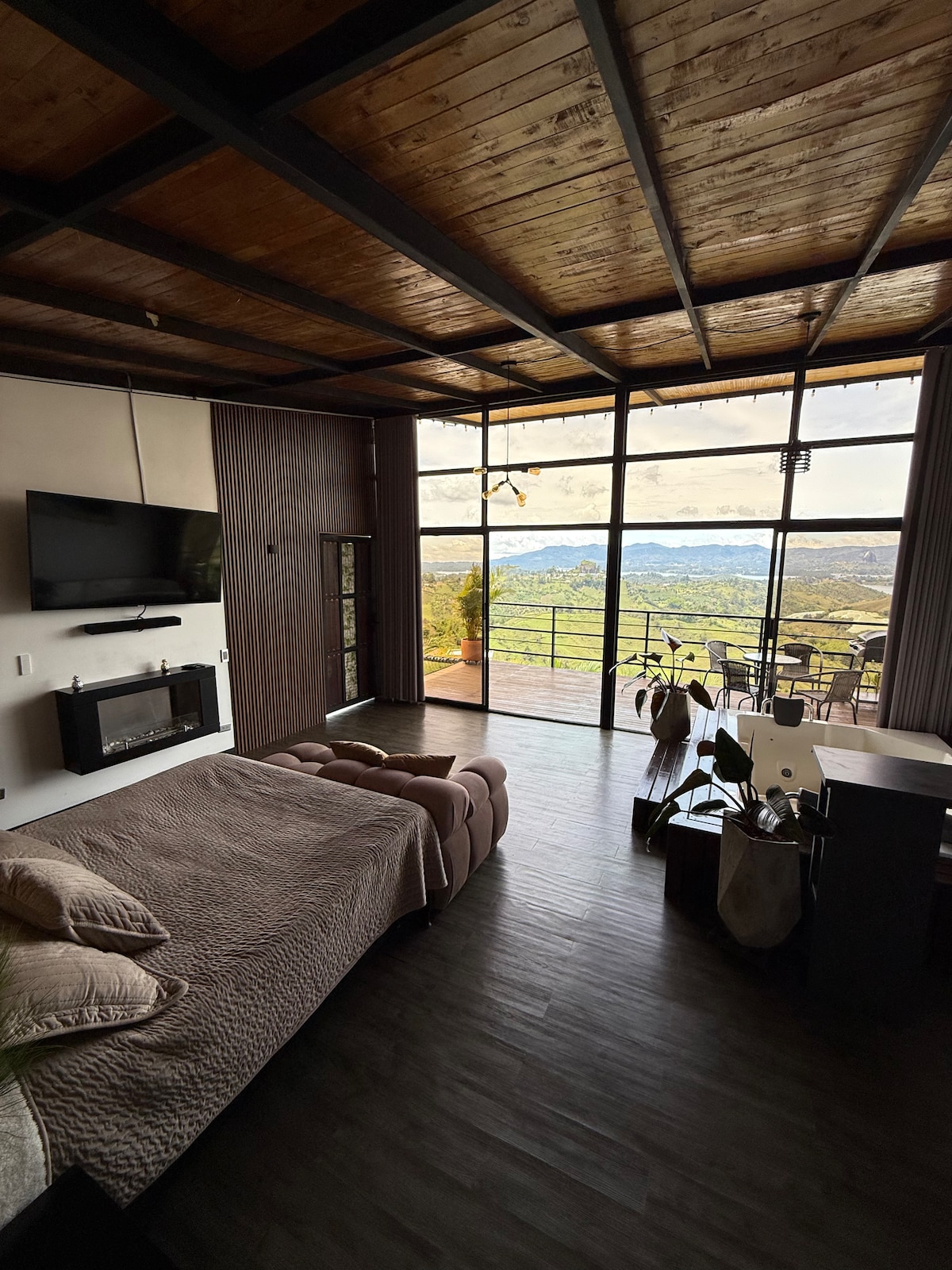Refugio Monte Alpino Nativo, Cabaña Alpina con Jacuzzi privado, a una hora de Medellín y a 20 minutos del Aeropuerto. con un diseño exclusivo que te permitirá vivir una experiencia única, cálida, elegante, acogedora y privada. Desconéctate de la rutina y conéctate con la naturaleza. Sumérgete en un cálido baño en Jacuzzi, disfruta de un buen vino en la chimenea o en la fogata exterior, disfruta el paisaje!