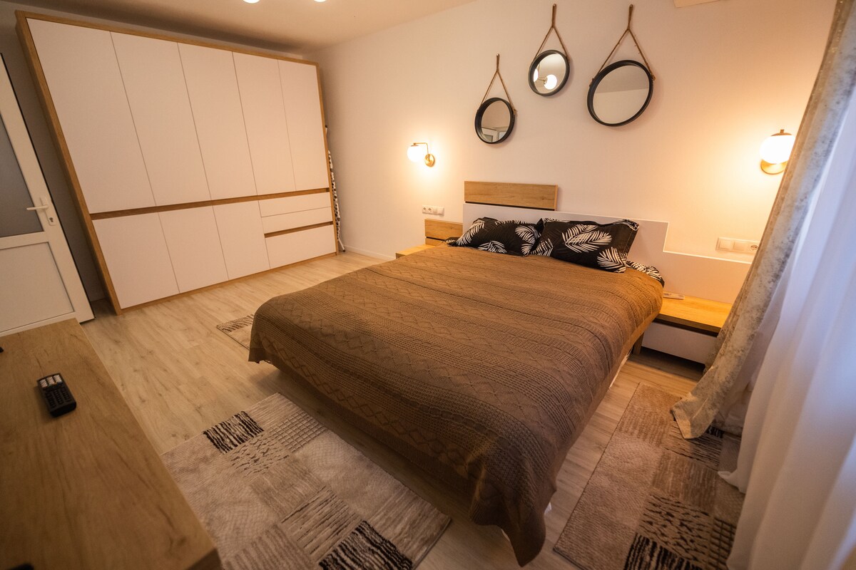 खास ट्रान्सिल्व्हेनियन पॅराडाईज कॉम्प्लेक्समधील आमच्या लक्झरी अपार्टमेंटमध्ये निसर्गाच्या मध्यभागी आराम आणि मोहकता. 4 लोकांपर्यंतच्या जोडप्यांसाठी, लहान कुटुंबांसाठी किंवा ग्रुप्ससाठी आदर्श, हे अपार्टमेंट परिष्करण आणि विश्रांतीचे परिपूर्ण मिश्रण देते. प्रीमियम किंग साईझ बेड, टॉप क्वालिटीचे लिनन्स आणि क्लासिक सजावट असलेली प्रशस्त बेडरूम, जी आरामदायक रात्रीच्या झोपेसाठी तयार केली गेली आहे. पूलकडे पाहत बाहेरील टेरेस. लक्झरी फिनिश, शॉवर केबिन आणि बाथटबसह स्टायलिश बाथरूम.