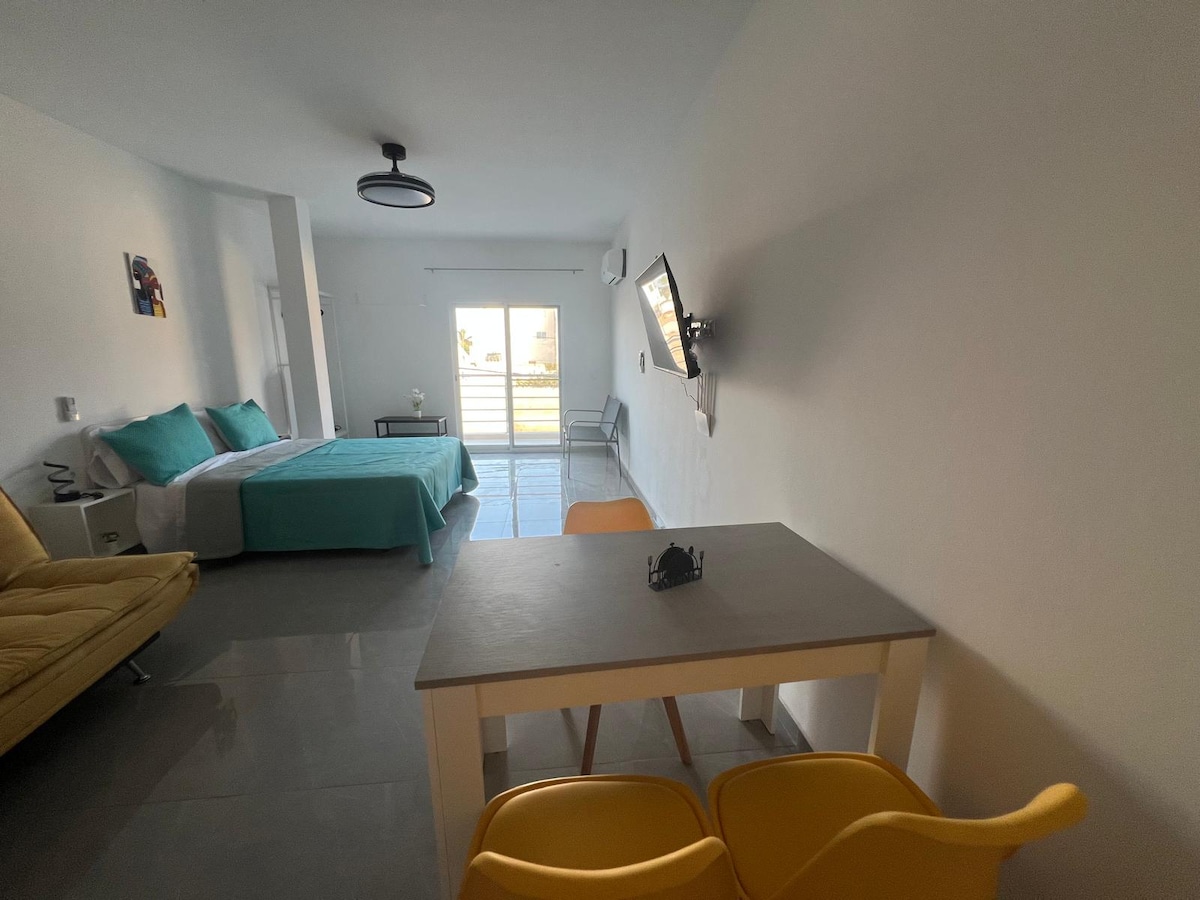 सांता मारियाच्या मध्यभागी स्थित, हे अपार्टमेंट वायफाय ॲक्सेस देते, एअर कंडिशन केलेले आहे आणि त्यात ओव्हन, बेडरूम आणि बाथरूमसह पूर्णपणे सुसज्ज किचनसह फ्लॅट - स्क्रीन टीव्ही आहे. अपार्टमेंटमध्ये पूल आणि समुद्राचे दृश्य आहे आणि त्यात एक सुंदर टेरेस आहे. खाजगी बाथरूममध्ये शॉवर आणि हेअर ड्रायर आहे. पोर्टो अँटिगो 2 पासून 5 मिनिटांच्या अंतरावर अनेक बार, रेस्टॉरंट्स आणि किराणा दुकाने गाठली जाऊ शकतात. विनामूल्य खाजगी पार्किंगची जागा.