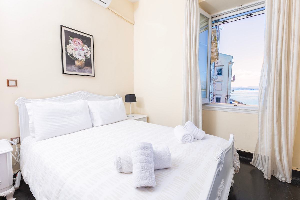 समुद्राच्या दृश्यासह कोर्फू ओल्ड टाऊनमधील आर्ट हाऊस