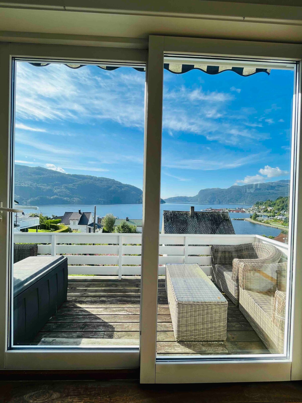 या शांत निवासस्थानी तुम्ही लिव्हिंग रूममधून, टेरेसवरून किंवा बाहेरील विल्डरनेस बाथमधून फजॉर्डच्या दृश्यांचा आनंद घेऊ शकता. ते फक्त 5 मिनिटे आहे. समुद्रापर्यंत खाली. सौदा गाव कारने फक्त 15 मिनिटांच्या अंतरावर आहे. येथे तुम्हाला स्विमिंग पूलसह बरेच काही मिळेल. वर्षभरात डोंगरावरील सुंदर सहली आणि इतर निसर्ग अनुभवांसाठी अनेक संधी आहेत. स्वांडॅलेन स्की सेंटर गाडीने 15 मिनिटांच्या अंतरावर आहे. हे कॉटेज अशा पाहुण्यांना भाड्याने दिले जाते जे आमच्या खाजगी कॉटेजमध्ये राहण्याचा आदर करतात आणि पार्ट्या आणि खाजगी कार्यक्रमांसाठी भाड्याने दिले जात नाहीत.