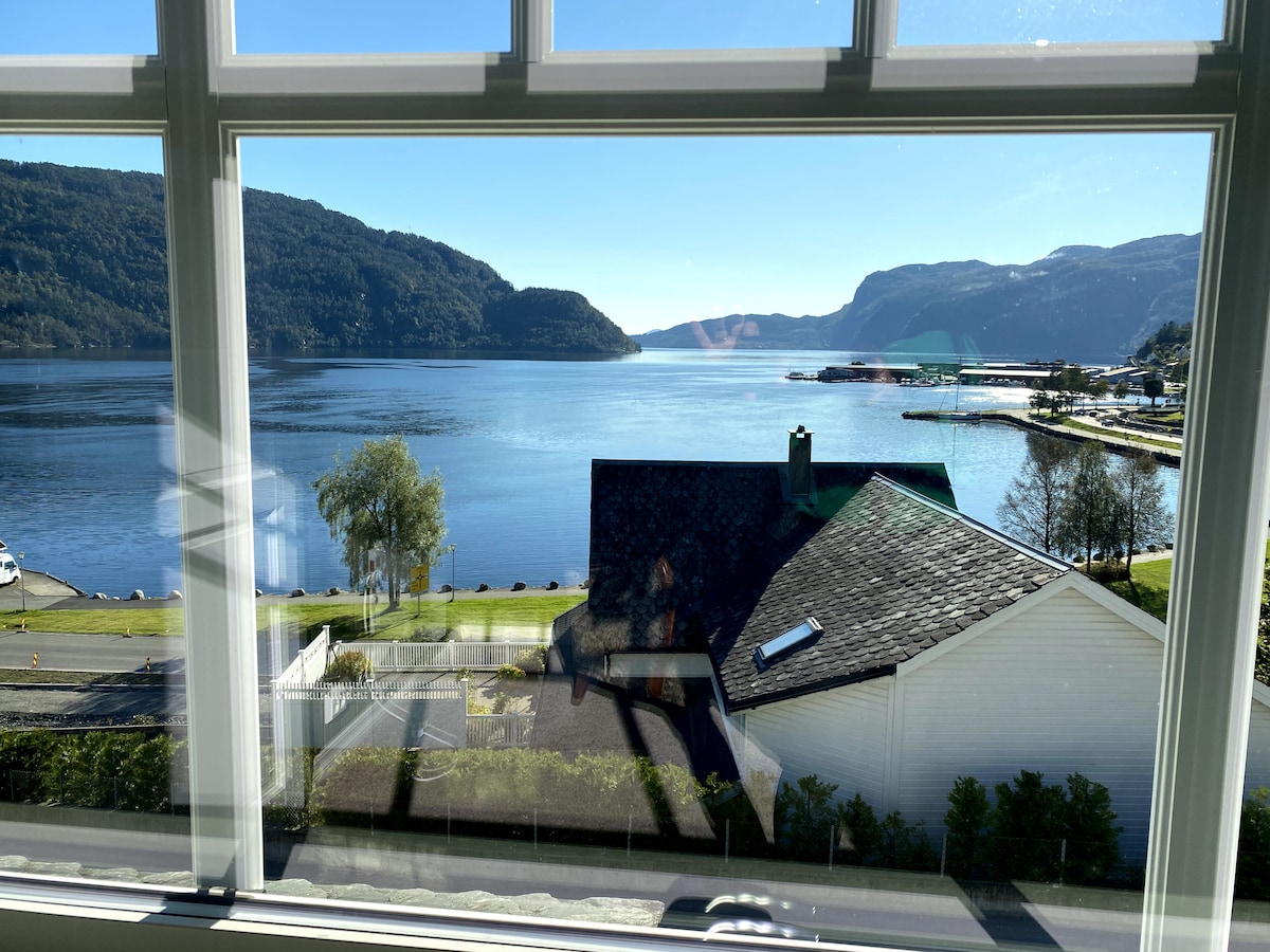 प्रशस्त, नूतनीकरण केलेले जुने घर समुद्रावरून दगडी थ्रो करते. तुमच्या स्वतःच्या अंगणात पार्किंग. ट्रॅम्पोलीन आणि पॅटीओ असलेले मोठे गार्डन, बार्बेक्यू सुविधांसह प्रशस्त आणि सूर्यप्रकाशाने भरलेले पोर्च. स्की रिसॉर्ट्स, स्की आणि हायकिंग ट्रेल्स, पोहण्याची सुविधा, बीच, समुद्र आणि माऊंटन फिशिंग, गोल्फ कोर्स इ. चे छोटे अंतर. जवळपासच्या मुलांसाठी चांगले खेळाचे मैदान. उबदार शहराच्या मध्यभागी कारने 5 मिनिटे. सीफ्रंटमध्ये रोबोट आणि मासेमारीच्या संधी (2 -3 लोकांनी वाहून नेणे आवश्यक आहे). सौदा फजोर्डकॅम्पिंग जवळच आहे. लिनन आणि टॉवेल्स समाविष्ट आहेत