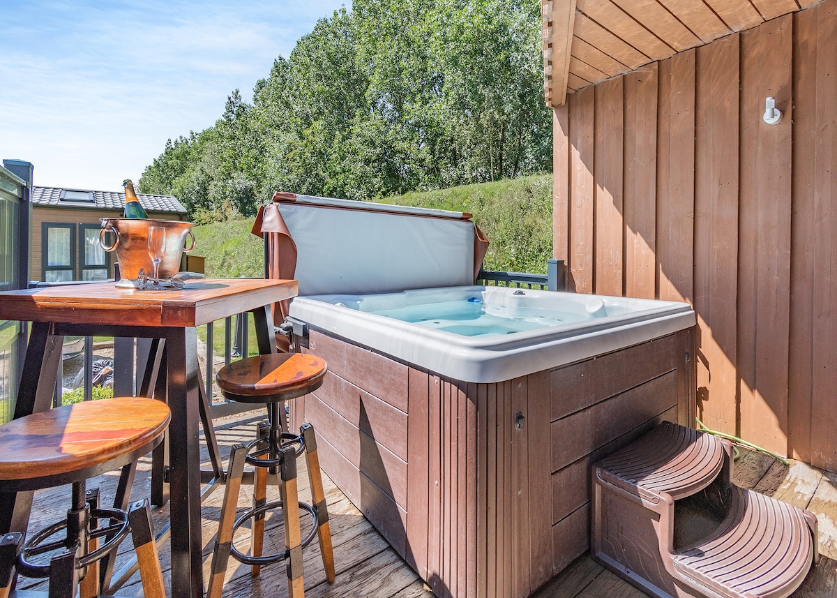 हॉट टब, यॉर्कशायर म्युअर्स असलेले फ्लोरल, लक्झरी लॉज