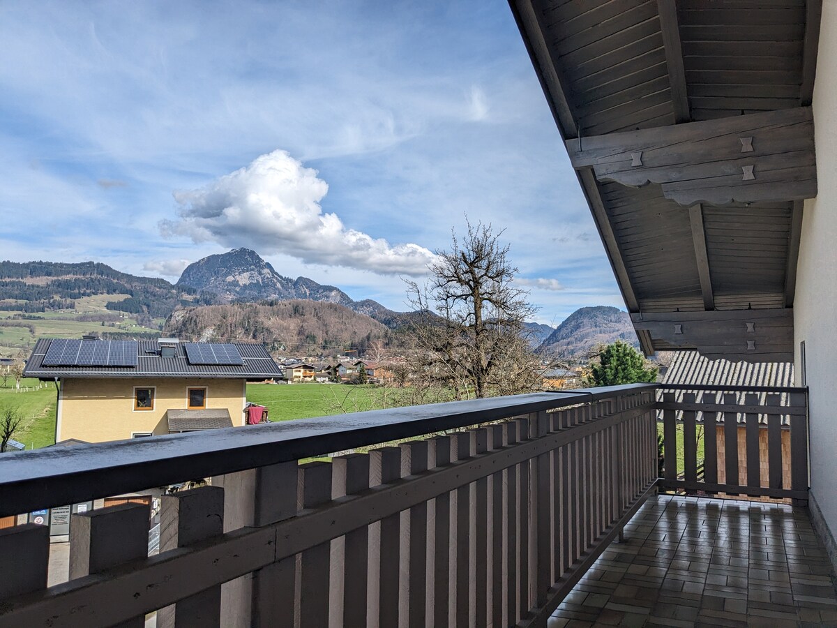 अपार्टमेंटमध्ये चमकदार, स्वादिष्ट सुशोभित रूम्स आणि पर्वतांच्या नजरेस पडणारी मोठी बाल्कनी आहे. शेअर केलेल्या मुख्य प्रवेशद्वाराद्वारे, तुम्ही पायऱ्यांद्वारे पहिल्या मजल्यावर असलेल्या तुमच्या अपार्टमेंटपर्यंत पोहोचू शकता. अनेक ॲक्टिव्हिटीजसाठी पाईडिंग हा एक आदर्श प्रारंभ बिंदू आहे: पोहणे, हायकिंग, सायकलिंग, साल्झबर्गचे जुने शहर 15 मिनिटांत पोहोचले जाऊ शकते.