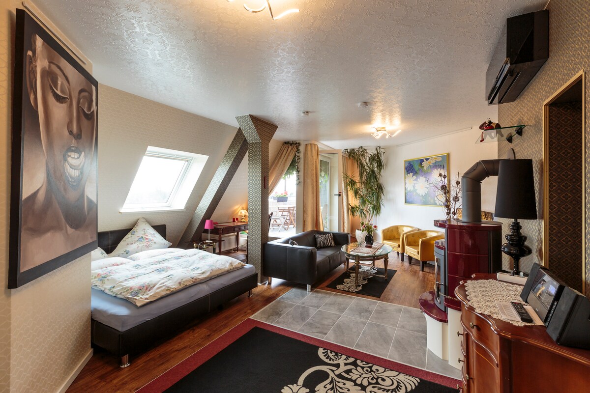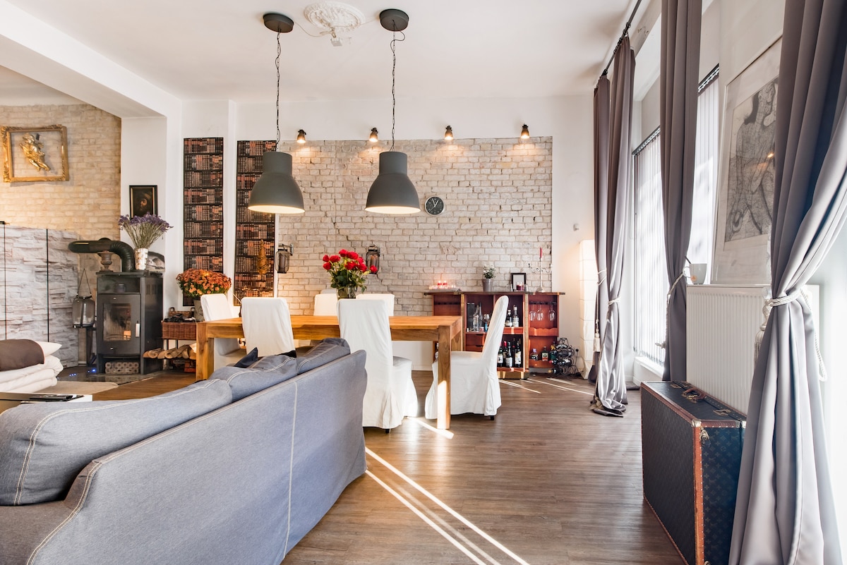 120sqm पेंटहाऊस/अटिक अपार्टमेंट+सॉना+फायरप्लेस