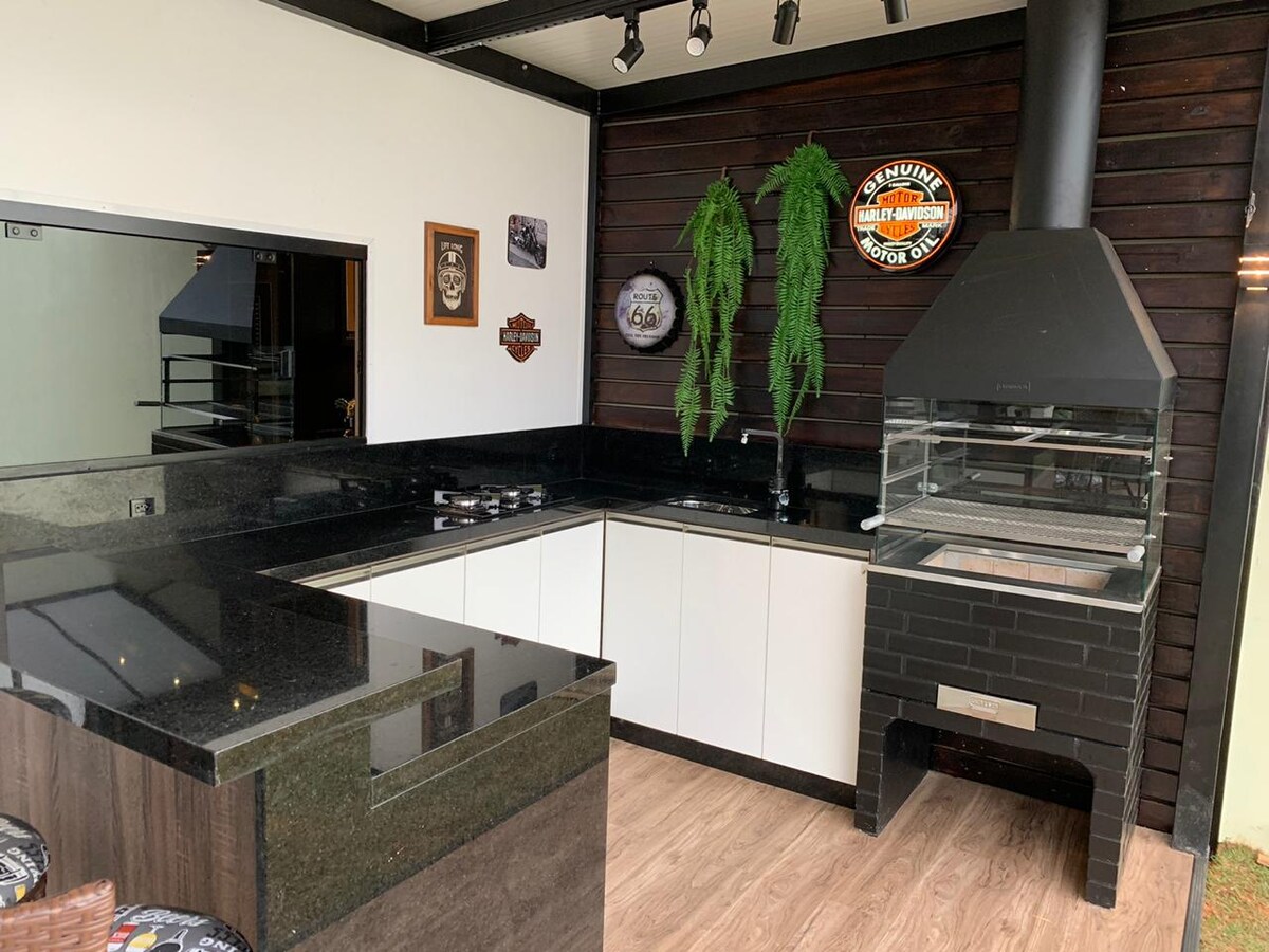 ऑफर: पूर्ण आणि पूर्णपणे सुसज्ज स्वयंपाकघर + पाणी आणि बर्फ फिल्टरसह रेफ्रिजरेटर; ७५" टीव्हीसह बैठकीची खोली; बार्बेक्यूसह बाहेरील जागा; दोन कारसाठी गॅरेज; शौचालय; पूर्ण कपडे धुण्याची व्यवस्था; बेडरूम १ (कपाट, डेस्क, बाल्कनी, एअर कंडिशनिंग, डबल बेडसह सूट); बेडरूम २ (डबल बेड, डेस्क, वॉर्डरोब, एअर कंडिशनिंग, निसर्ग दृश्य); ०१ सामाजिक बाथरूम; सुविधा: वाय-फाय; बेड आणि बाथ लिनन्स; लोकेशन: डाउनटाउनपासून 10 मिनिटे; फार्मसी आणि मार्केटच्या जवळ;
