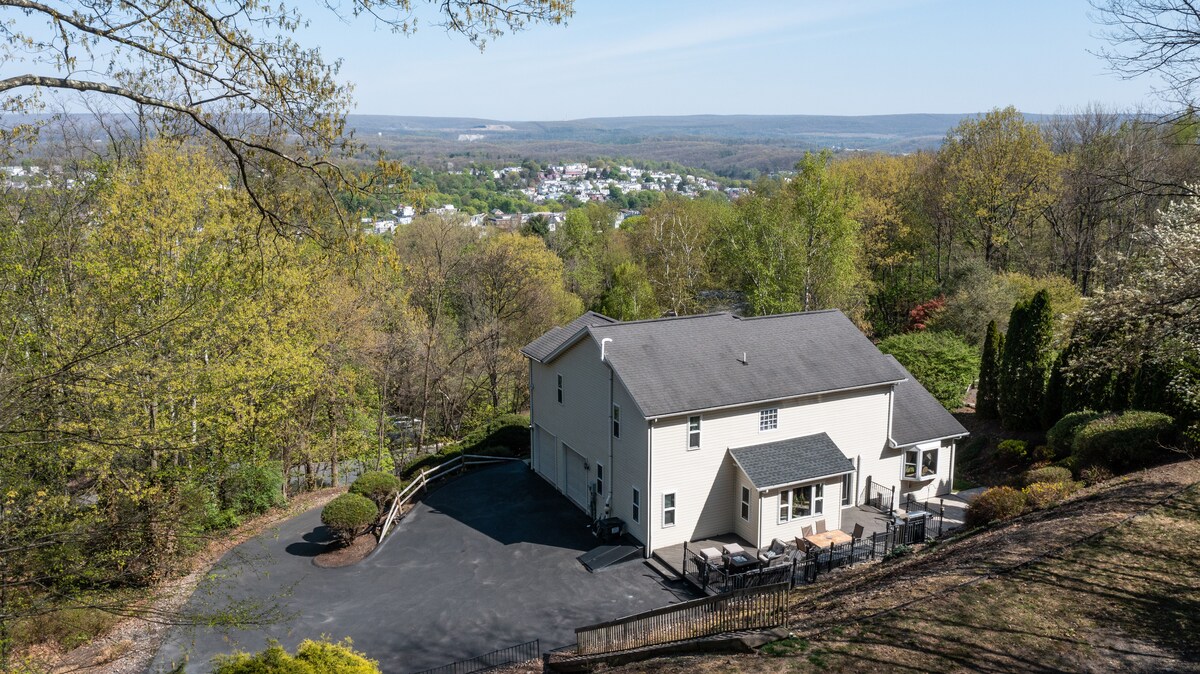 ब्लू माऊंटन ओव्हरलूक ब्लू माऊंटन/अपालाशियन ट्रेलवर आहे. सेंट्रल पेनसिल्व्हेनियाच्या सुंदर ब्लू माऊंटन्समध्ये पळून जा आणि या एकाकी आणि प्रशस्त घरात आराम करा. बर्क्स काउंटीच्या शांत जंगलांमध्ये वसलेले, येथे तुम्ही निसर्गाच्या शांततेचा आणि शांततेचा आनंद घ्याल. एका हिरव्यागार, लाकडी सेटिंगमध्ये रोमँटिक लक्झरी आणि एकाकीपणाचा अनुभव घ्या जे पर्वत आणि दऱ्या या दोन्हींचे चित्तवेधक, पॅनोरॅमिक दृश्य देते. वर्षभर आनंद घेण्यासाठी हे एक परिपूर्ण डेस्टिनेशन स्पॉट आहे.