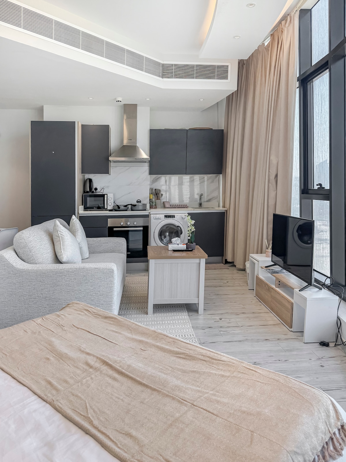प्राइम लोकेशनमधील नाईस स्टुडिओ लक्झरी, पूर्णपणे सुसज्ज अपार्टमेंट. टीव्ही स्क्रीन आणि सोफा सेट. संगमरवरी आणि लाकूड फ्लोअरिंग. आकार 40 चौरस मीटर. पॅनोरॅमिक विंडो. सर्व उपकरणांसह आधुनिक किचन उघडा. हाय स्पीड इंटरनेट. बिल्डिंग सुविधा: आऊटडोअर स्विमिंग पूल बार्बेक्यू क्षेत्र. प्रशस्त आणि आधुनिक जिम्नॅशियम. सुरक्षा सेवा. रिसेप्शन सेवा. देखभाल सेवा. इनडोअर रिझर्व्ह पार्किंग
