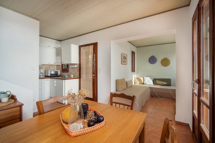 Enjoy your summer holiday in Villa Lefteris.This 50q.m apartment has a wonderful view to the see and to the picture in port of Sifnos, Kamares.Just in front of the house you could enjoy a dire in the crystal clear, blue water. On the balkony you can admire the wonderful colours of the skay all day long and especially during the sunset. If you dream of peacufull nights by the see then that's the right place for you. Our apartment is fully equipped casy with details of island style decoration.