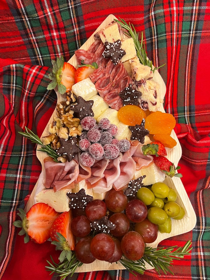 उत्सवाच्या ख्रिसमस ट्री ट्रेवर चारक्युटेरी व्यवस्था (डिस्पोजेबल).