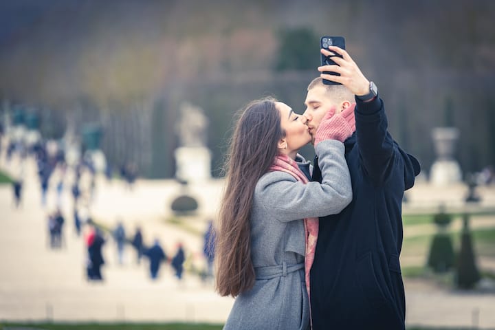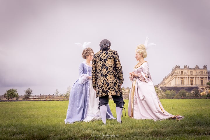 व्हर्सायच्या रस्त्यावर किंवा उद्यानांमधील हा आऊटडोअर क्षण एका अनोख्या स्मृतिचिन्हेसाठी आदर्श आहे.