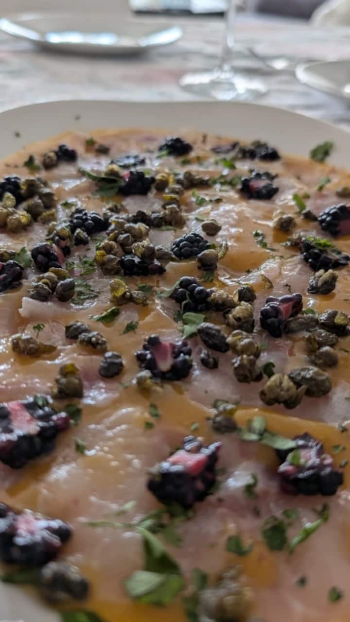 पहिल्या बाइटपासूनच आश्चर्यचकित करणारा मेनू. आम्ही कॅरमेलाइज्ड चेरी टोमॅटो असलेल्या स्ट्रॅकियाटेलाच्या टोस्टरपासून सुरुवात करतो, त्यानंतर आयबेरियन कोरिझोच्या स्पर्शासह मूळ मेलन आणि डिल्डो अजोब्लॅंको येतो. आम्ही शतावरी सॉस आणि लोणचे स्ट्रॉबेरीसह कॉडसह सुरू ठेवतो. शेवटी, थंड पिस्ताचिओ केकची गोडी आणि ताजेपणा.