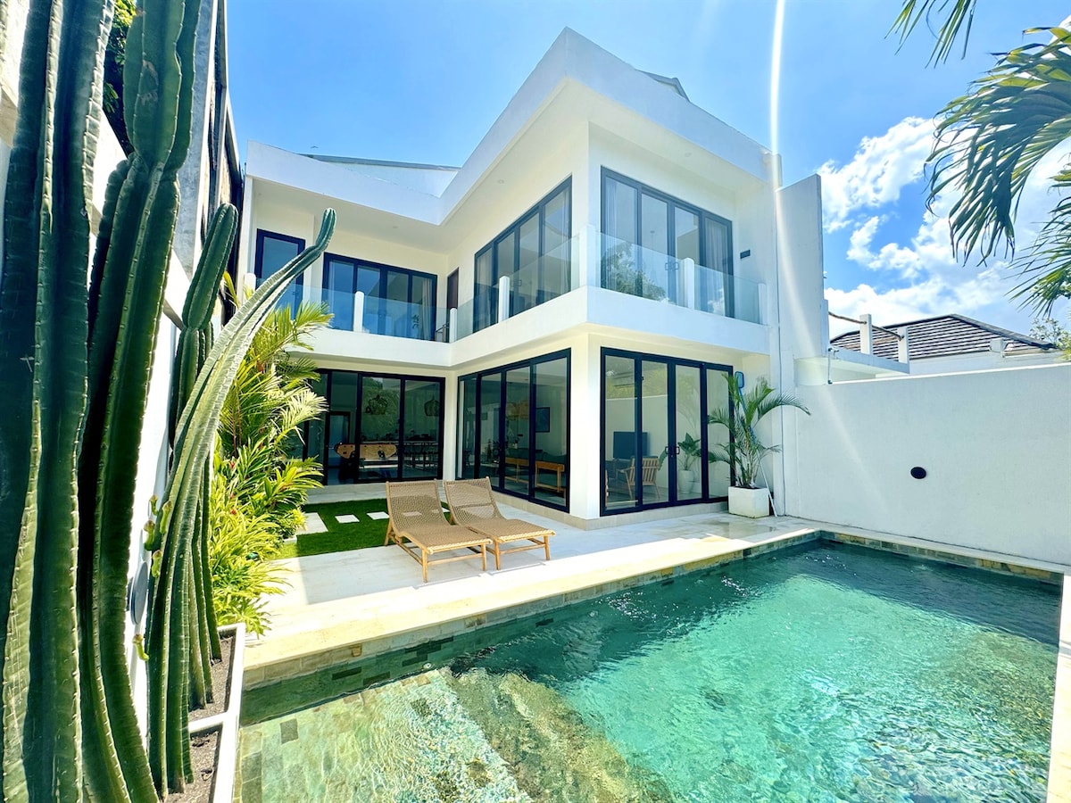कॅंगगुच्या मध्यभागी असलेल्या आमच्या लक्झरी व्हिलामध्ये तुमचे स्वागत आहे, बीचपासून फक्त 500 मीटर अंतरावर आणि चालण्याच्या अंतरावर 30+ कॅफे आणि रेस्टॉरंट्सनी वेढलेले. तुमच्या प्रायव्हेट पूल, ट्रॉपिकल गार्डन आणि दैनंदिन साफसफाईसह निश्चिंत दिवसांचा आनंद घ्या. सर्व काही आरामासाठी व्यवस्थित केले आहे: ✔ खाजगी पूल ✔ दैनंदिन साफसफा ✔ बीच आणि बाथ टॉवेल्स समाविष्ट आहेत ✔ फ्रेश ड्रिंकिंग वॉटर डिस्पेंसर ✔ स्कायलाईट बाथटब ✔ ट्रॉपिकल बेडरूम व्ह्यू ✔ पूर्णपणे सुसज्ज किचन ✔ जलद वायफाय ✔ स्मार्ट टीव्ही चालण्याच्या अंतराच्या आत ✔ 40+ रेस्टॉरंट्स