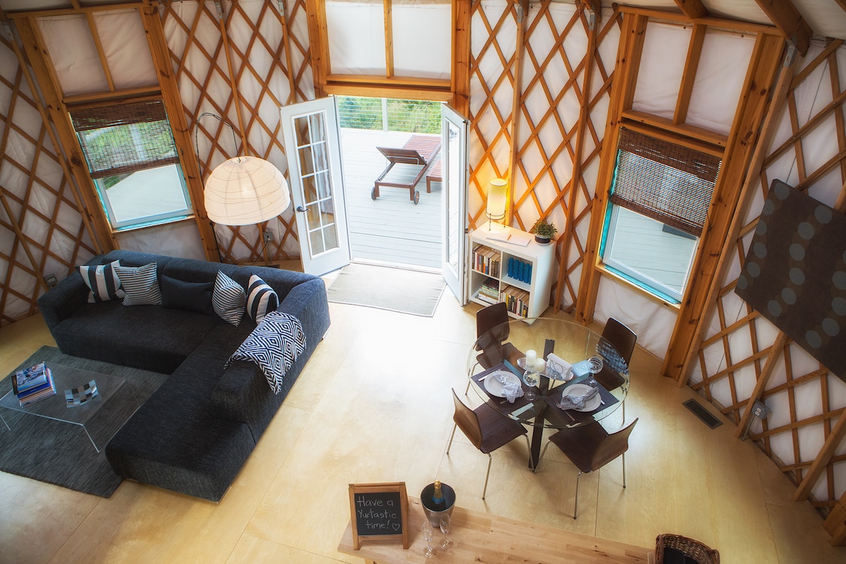 अनुभव ग्लॅम्पिंग, ब्लू रिज स्टाईल. आमचे लक्झरी यर्ट एका लहान टेकडीच्या शीर्षस्थानी, नैसर्गिक सौंदर्याने वेढलेल्या 70 एकर फार्मस्टेडच्या मध्यभागी आहे. नाईट आर्चर फार्म नेल्सन काउंटीच्या आफ्टनमधील एका शांत कंट्री रोडच्या बाजूला आहे. हे खाजगी आहे, परंतु रिमोट नाही. तुम्ही ब्रू रिज ट्रेल, वाईनरीज, ब्रूअरीज, विंटरग्रीनमध्ये स्कीइंग, ब्लू माऊंटन ब्रूवरी, डेविल्स बॅकबोन, गोल्फ, हायकिंग किंवा ब्लू रिज पार्कवे चालवण्याच्या जवळ आहात. यर्टमधून थेट पर्वतांमध्ये चढा!