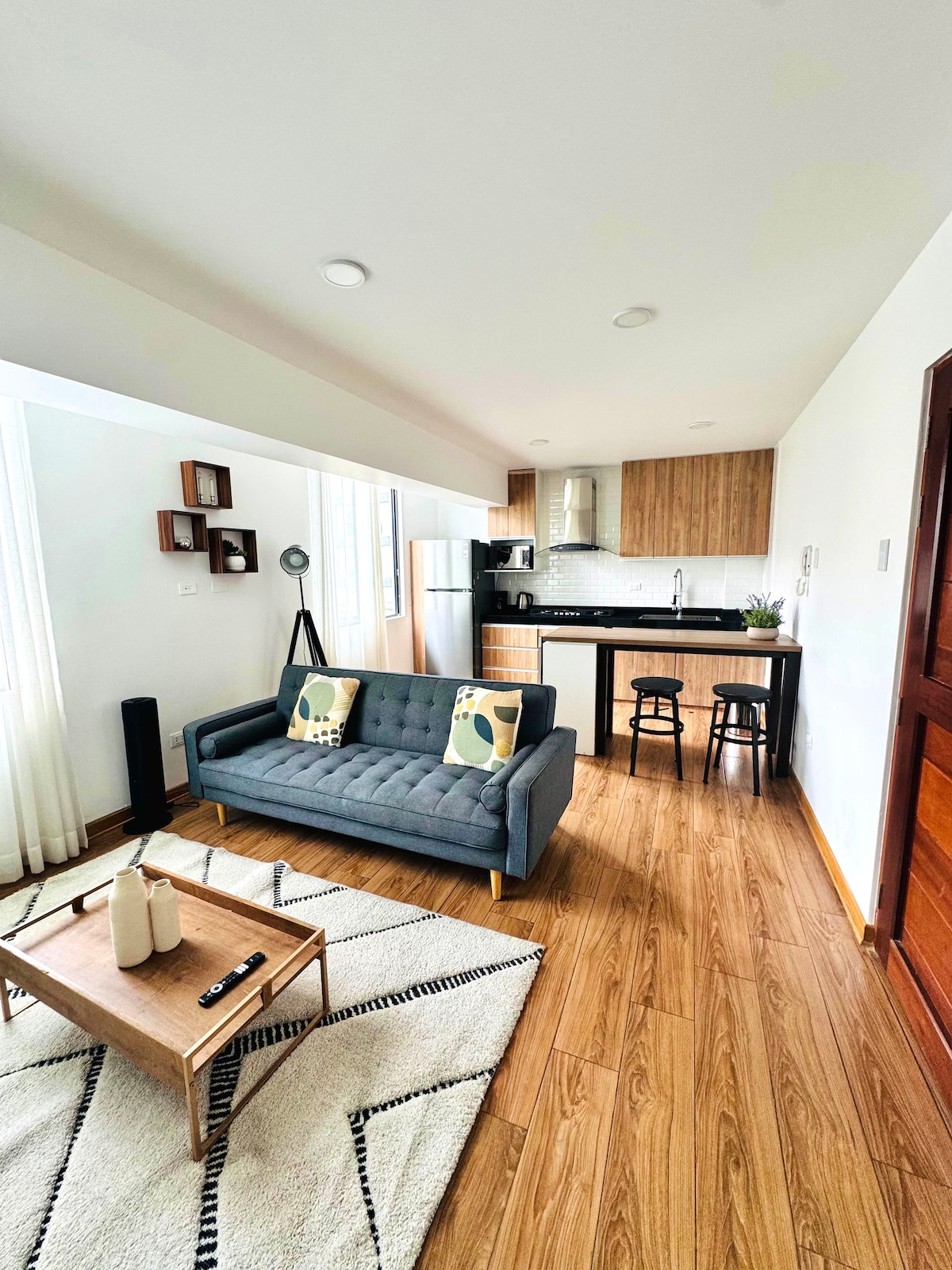 Monoambiente cómodo y seguro cerca al Óvalo Papal. Equipado con una cama de dos plazas y dos camas individuales, ideal para hasta cuatro personas. Cuenta con TV de 55 pulgadas con acceso a plataformas de streaming y WiFi de alta velocidad. Ubicado dentro de un condominio privado con vigilancia permanente y videovigilancia. Excelente ubicación con acceso rápido a transporte, comercios y puntos de interés.