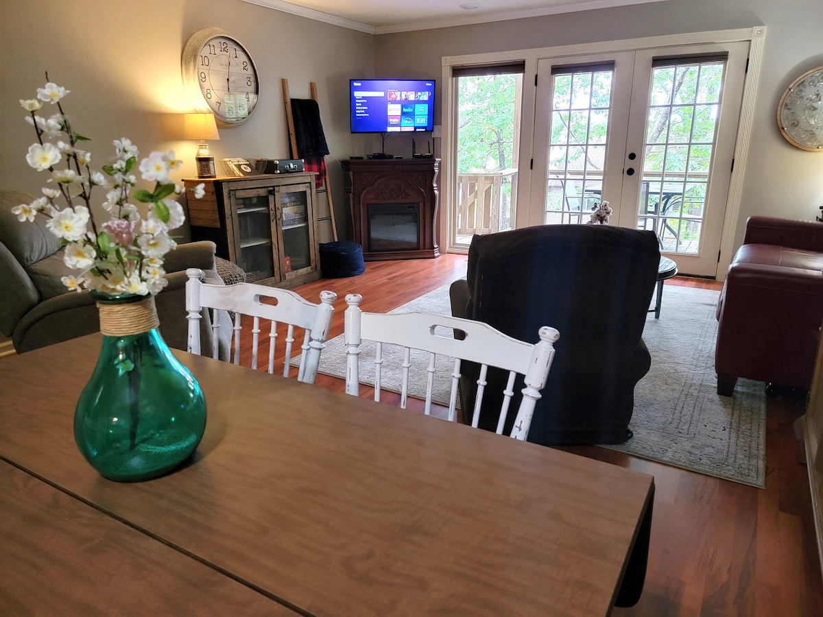 हॉट टब आणि आरामदायक डेकसह आरामदायक केबिन — सकाळच्या कॉफीसाठी किंवा ताऱ्यांखाली वाइनसाठी परिपूर्ण. ग्रीर्स फेरी तलावावरील एका शांत खाडीपर्यंत फक्त थोडेसे चालायचे. क्वीन बेड्स असलेल्या दोन बेडरूम्स, ज्यात चार गेस्ट्स आरामात झोपू शकतात. फायर पिट, पोर्च स्विंग, आऊटडोअर डायनिंग आणि वर्षभर शांत निसर्गाचा आनंद घ्या. बोट आणि आरव्ही हुकअप्स उपलब्ध आहेत. ग्रीर्स फेरी लेक मरिनाज, मासेमारी, बोटिंग आणि निसर्गरम्य तलावावरील साहसांच्या जवळ. जोडप्यांसाठी, लहान कुटुंबांसाठी, मासेमारी ट्रिप्ससाठी किंवा तलावाजवळ आराम करण्यासाठी परिपूर्ण.