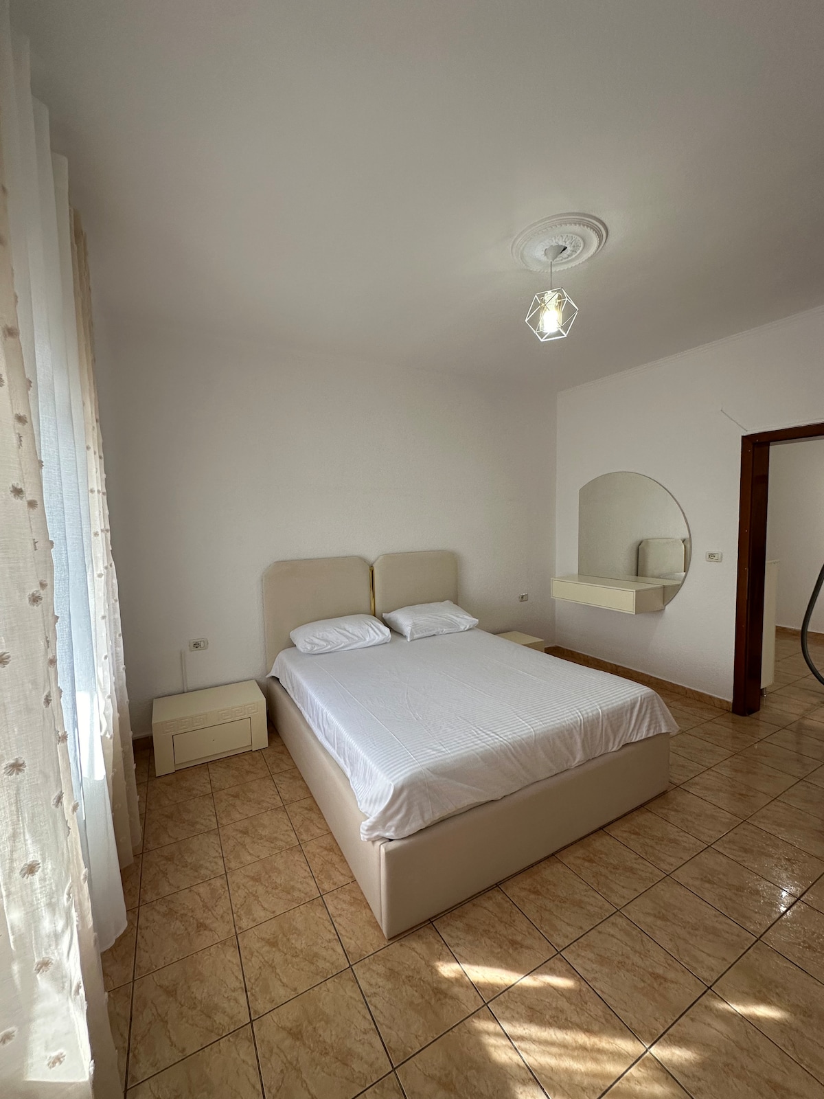 नव्याने बांधलेल्या स्ट्रक्चरमध्ये आधुनिक, प्रशस्त आणि उज्ज्वल अपार्टमेंट्स. हे अपार्टमेंट पहिल्या आणि दुसऱ्या मजल्यावर 100 मीटर 2 आहे, शांत निवासी आसपासच्या परिसरातील शहराच्या मध्यभागी आहे. मालक आणि होस्ट म्हणून, शहर आणि आसपासच्या परिसराच्या एक्सप्लोरिंगसाठी तुमच्याकडे आरामदायक लाँचिंग पॅड असल्याची खात्री करणे हे माझे ध्येय आहे. कृपया दृश्ये पाहण्यासाठी आणि सुंदर उत्तर अल्बेनिया एक्सप्लोर करण्यासाठी खालील नकाशाखाली वर्णन पहा.