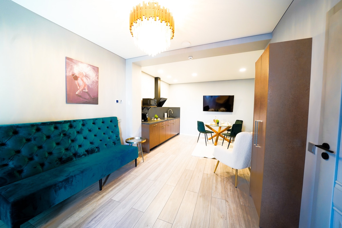 अपार्टमेंट एका कॉमन मोठ्या जागेद्वारे ओळखले जाते: आधुनिक जकूझीसह एक खाजगी स्पा, जिथून तुम्ही आरामदायक डबल बेडसह डिजिटल टीव्ही आणि बेडरूमची जागा पाहू शकता. शेवटी, विचारपूर्वक तपशीलांसह एक उबदार, पूर्णपणे सुसज्ज किचन. इलियुलियाईमध्ये तुमच्या आनंददायक वास्तव्यासाठी तुम्हाला फक्त एवढेच आवश्यक असू शकते ! अपार्टमेंट शांत विश्रांतीसाठी डिझाईन केले आहे, त्यामुळे पार्टीज आणि गोंगाट करणाऱ्या वास्तव्याच्या जागा भाड्याने दिल्या जात नाहीत.