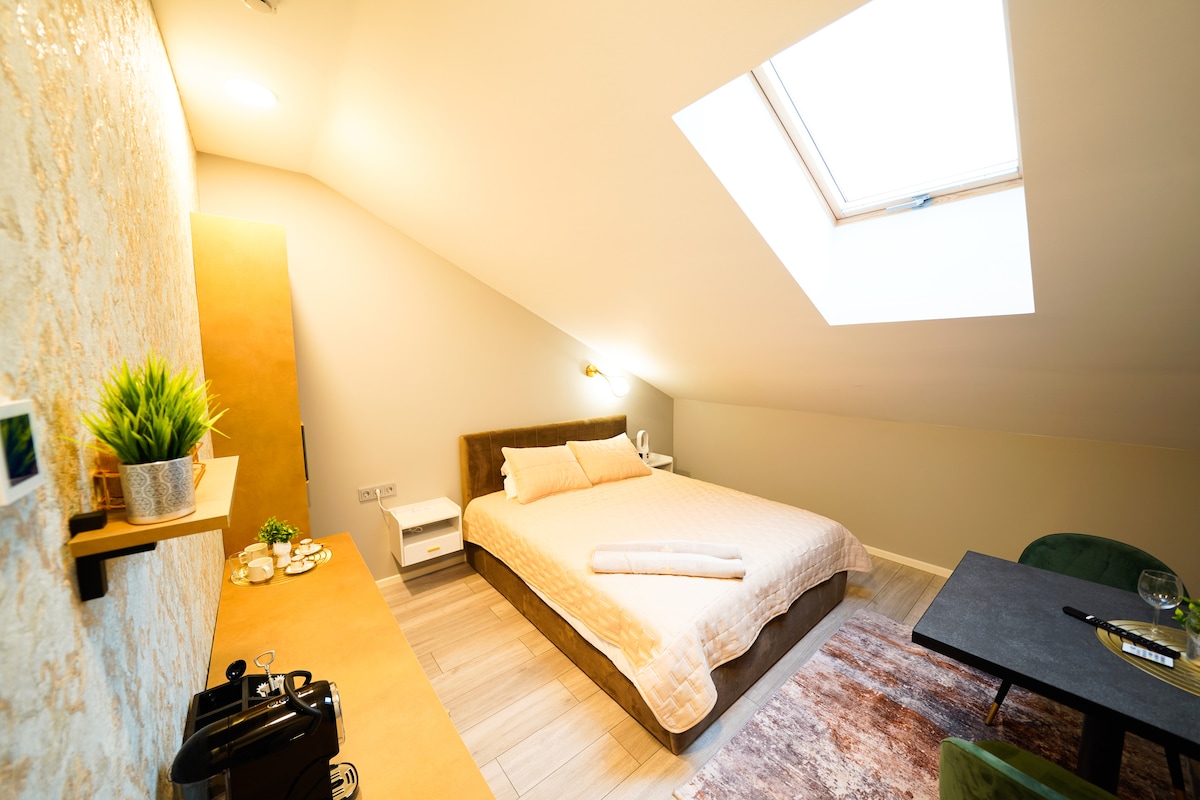 ही विलक्षण जागा दर्जेदार फर्निचर, बाली - स्टाईल स्लीपिंग एरियासह सुसज्ज आहे. अपार्टमेंट गेस्ट्सना उन्हाळ्यात ताजी, रिकव्हर केलेली हवा आणि एअर कंडिशनिंग किंवा हिवाळ्यात फ्लोअर हीटिंग प्रदान करेल. एका ऐतिहासिक इमारतीत सेट केलेल्या या प्रॉपर्टीमध्ये कॉपर बाथटबसह एक अनोखे बाथरूम आहे. को - हू स्टुडिओ हा एक आवडता कौटुंबिक प्रकल्प आहे जो लोकांना इलियुलियाईमध्ये राहण्यासाठी स्वतंत्र जागा प्रदान करण्यासाठी डिझाइन केलेला आहे. तुमच्या आनंदासाठी तुम्हाला नेहमीच एक लहान आश्चर्य किंवा लहान भेटवस्तू मिळतील.