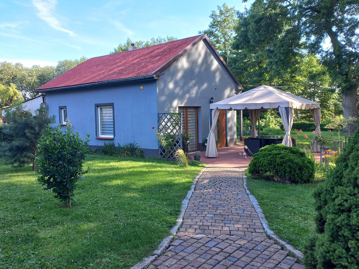 मोठ्या शहरापासून दूर, आमचे "फार्मर्स कॉटेज" जंगल रिझर्व्ह "च्या काठावरील" विजकोवस्की लास "च्या काठावर असलेल्या नयनरम्य भूखंडावर आहे. येथे तुम्ही संपूर्ण शांती आणि शुद्ध निसर्गाचा अनुभव घेऊ शकता! जंगलातून चालत जाणे, असंख्य झुडुपे आणि तलावांपलीकडे जाणे, फायरप्लेसजवळील पुस्तक वाचणे किंवा जवळपासच्या बाल्टिक समुद्राची ट्रिप वाचणे? हे सर्व आणि बरेच काही तुम्ही येथे व्यक्त करू शकता!