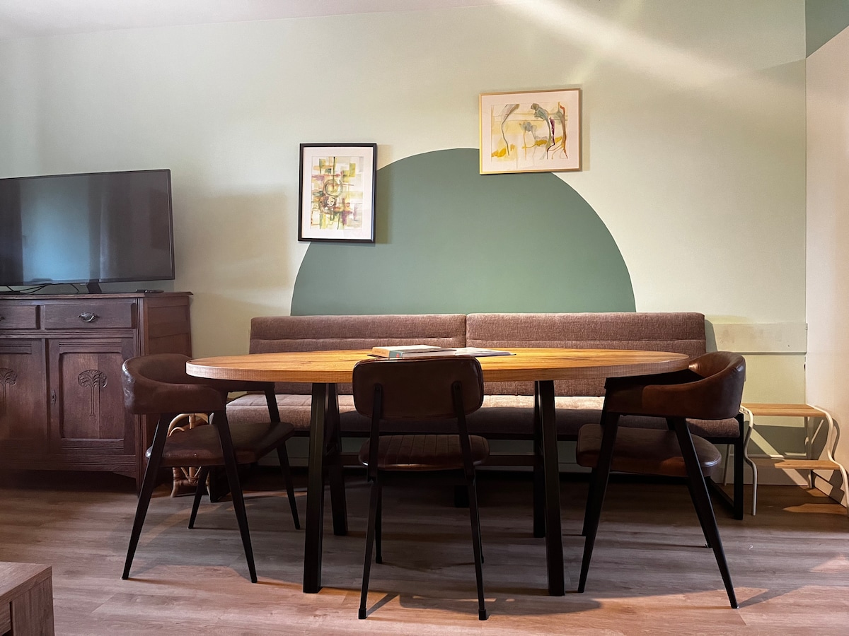 या स्टाईलिश, लक्झरी आणि पूर्णपणे सुसज्ज सुट्टी अपार्टमेंटमधून या प्रदेशाचा सहजपणे शोध घेता येतो. आकेन किंवा वाल्सपासून मास्ट्रिचपर्यंत दक्षिण लिंबर्ग तुमच्या पायथ्याशी आहे. सकाळी चराचरीत गाढवांना अभिवादन करा आणि रात्री बेडस्टीमध्ये झोपा.