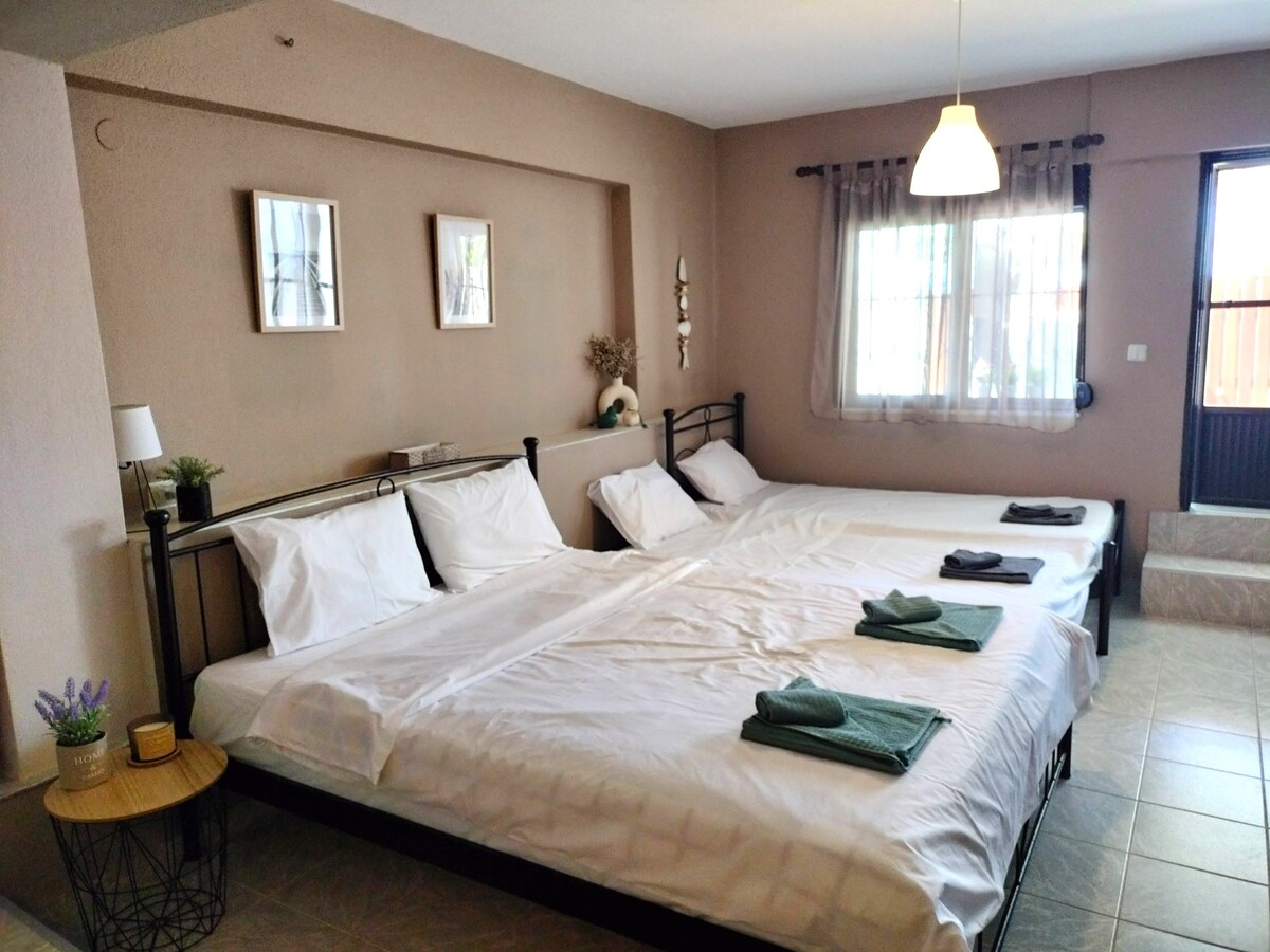 क्रिटामन 4 बीचजवळ आणि निओस मारमारासच्या मध्यभागी असलेल्या शांत परिसरात आहे. 40m2 अपार्टमेंट ज्यामध्ये सर्व काही आहे. त्याची बाल्कनी मोठी आहे आणि तुमच्या कॉफी किंवा ड्रिंकचा आनंद घेण्यासाठी निओस मारमारासच्या समुद्राच्या अद्भुत दृश्यासह आहे. जर तुम्हाला सकाळी लवकर उठायचे असेल तर तुम्ही माऊंट मेलिटनच्या उतारांमधून सूर्योदयाचा आनंद घ्याल.